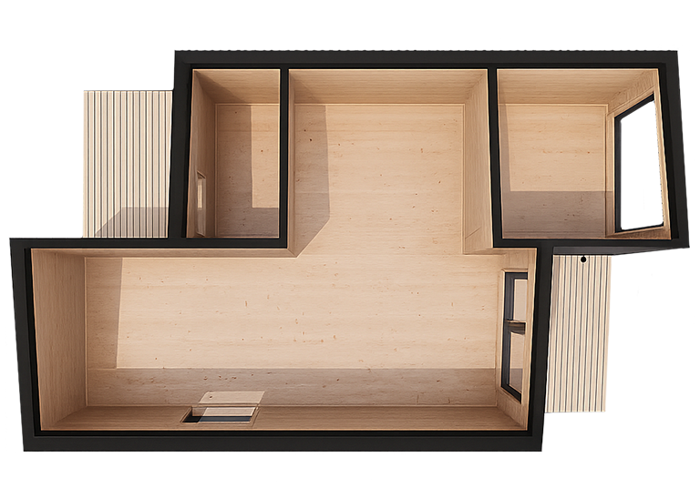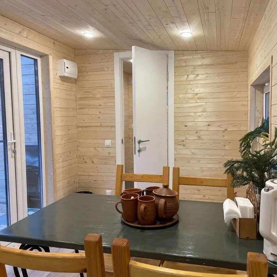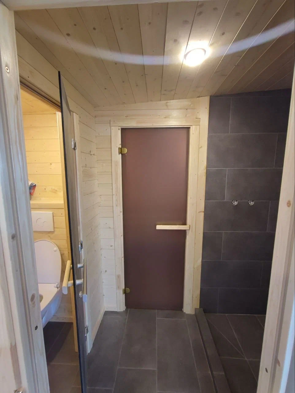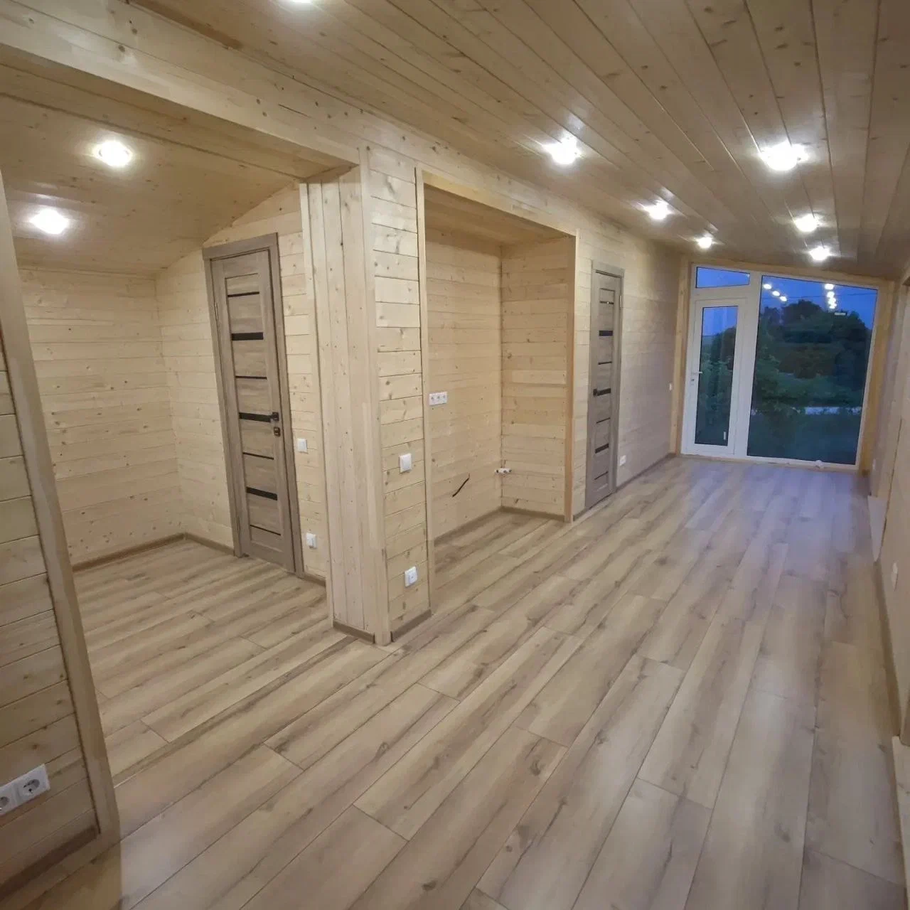 Санузел: стены - вагонка хвоя AB, пол – кварц-виниловая плитка, выводы под унитаз и ХВС/ГВС